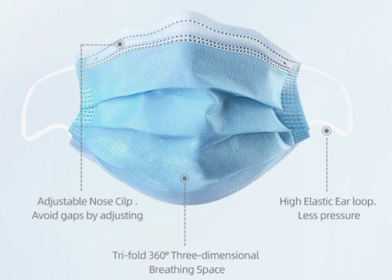 Custom non woven disposable face mask High Filtration Mask with Loops - 3ply.